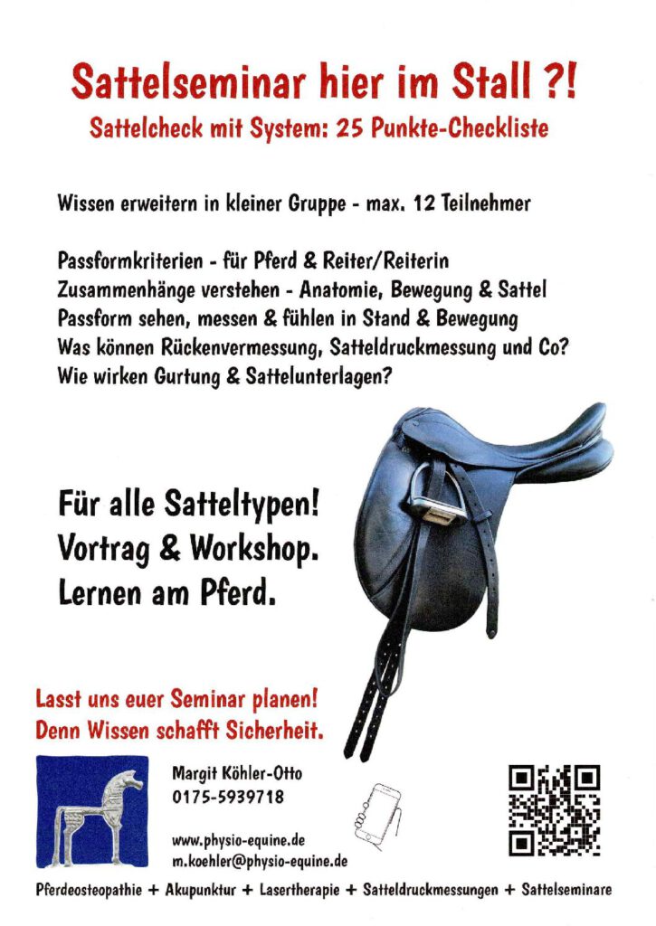 Ich komme für ein Sattelseminar in Deinen Stall!